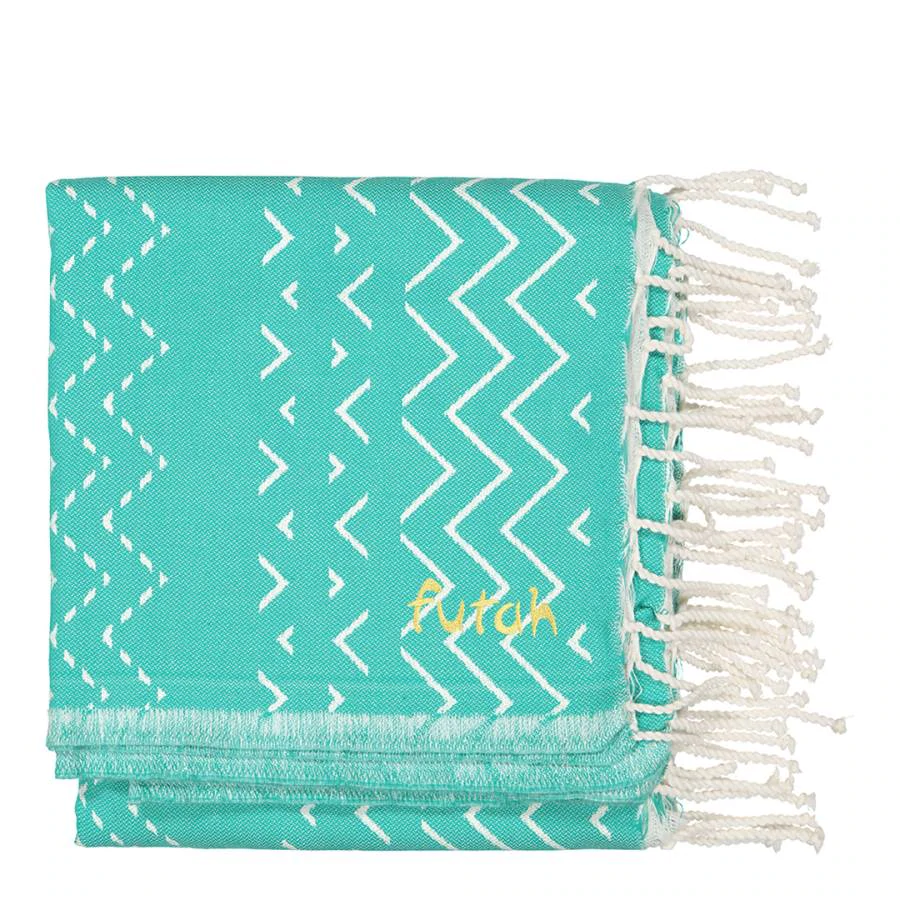 Double beach towel with seamless zigzag pattern and fringes. Light-weight, resistant and super absorptive. Using the highest weaving quality and 100% cotton, the Futah towels are light, absorbent, and resistant, perfect for hot days and cool nights or a throw blanket to style your couch.