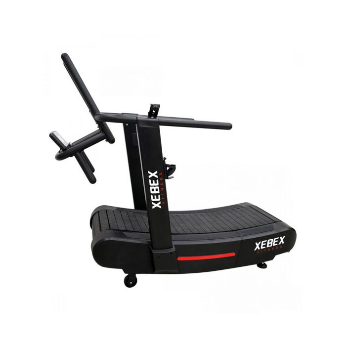The Xebex AirPlus Runner Smart Connect is a motorless, self-generated, curved treadmill with 8 levels of resistance to mimic a sled. The product allows beginners and competitors can run at the desired speed and change the output at will with no maximum or minimum speed setting.